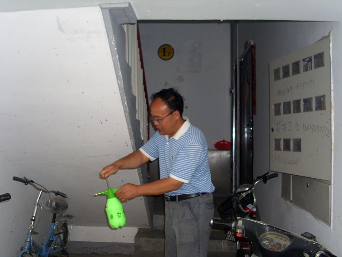 夏季来临,蚊蝇滋生,为消灭“四害”,给职工创造一个良好的生活居住环境,6月10日下午,后勤支部后勤处党小组集中对职工生活园区52个单元的楼道内及公共区域的垃圾桶进行了全面的清理,并采取喷洒药物等手段消灭蚊蝇。