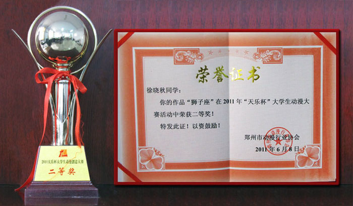 共有来自全省的四十三所高校参加了此次大赛,参赛作品达一千八百多件,信息工程系代表我院参加了比赛。经参赛师生共同努力,该系0 8级动漫专业徐晓秋同学的作品“狮子座”以巧妙的构思、新颖独特的创意,荣获大赛二等奖,曹晓丽老师获优秀指导老师奖。