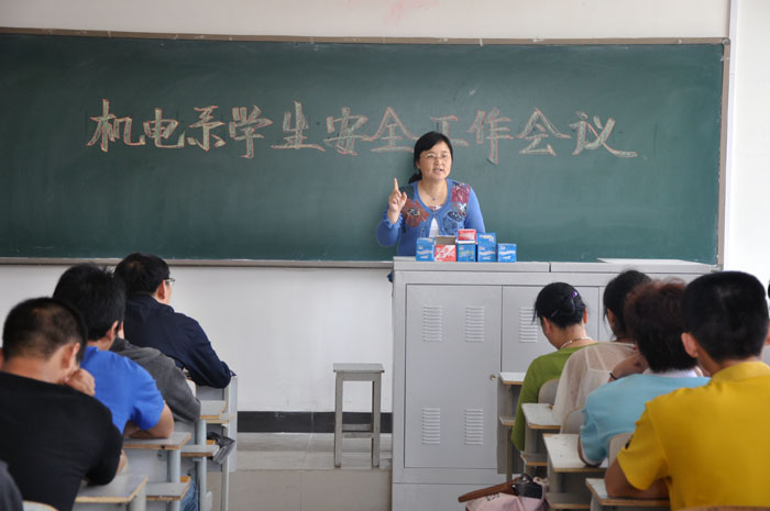 5月12日下午,机电系召开学生安全工作会议,副院长肖珑出席,系党总支副书记袁世先、全体辅导员、学生会成员以及学生代表100余人参加了会议。