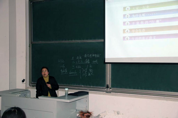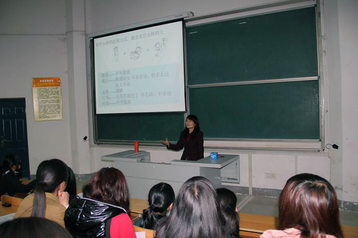 4月11日晚,系主任万久玲、副主任李湘勤、刘冰涛以及沈莉莉、田嘉、温宗和等六位老师在电教楼分别就“职业规划”、“提高交际能力”、“提高学习能力”、“丰富课余生活”和“提高实践能力”等五个专题举行首轮宣讲,受到学生们的热烈欢迎,由此拉开了本次活动的序幕。