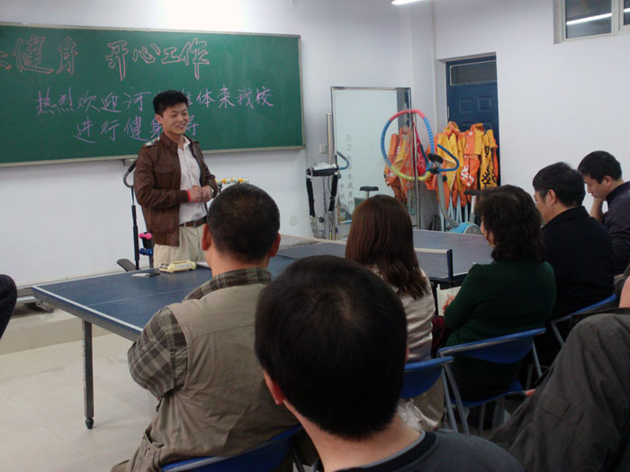 活动过程中,维体健身俱乐部的尚大伟教练细心地向大家讲解各种器械的正确使用方法,并通过各项测试,逐一了解大家的身体状况,建议大家有针对性地进行各项运动。通过此次活动,不但让教师学到了许多专业健身知识,而且还提高了健康意识,为今后健康工作,快乐教学,打下了坚实的基础。