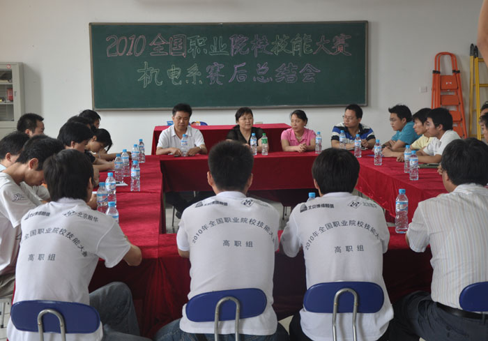 6月29日上午,机电系在机电实训楼402室召开2010年全国职业技能大赛总结会,总结会由系主任肖珑主持,系副主任李伟、党总支副书记袁世先、团总支书记孙德胜、实训中心副主任王东辉及四个参赛项目组的指导教师和12名选手参加。