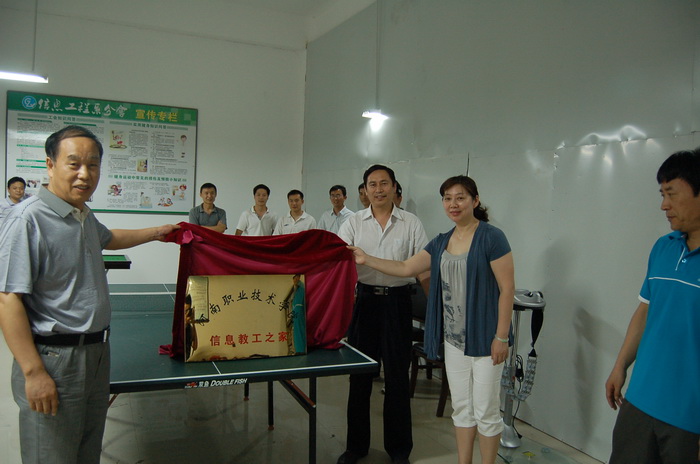 6月21号下午,信息工程系分会举行了“教工之家”揭牌暨第二届双升比赛颁奖仪式。院工会主席郭自川、副主席赵燕军和该系分会主席张滨燕、党总支书记李明玉、副主任孙杰及部分教职员工参加了仪式。