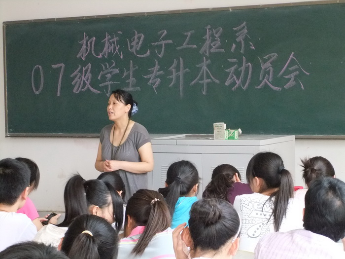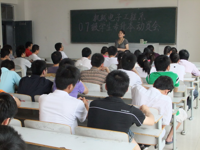 6月2日下午,机械电子工程系在机电实训楼405召开了07级学生专升本动员会。机电系党总支副书记袁世先和全体07级辅导员以及即将参加2010年专升本考试的91名07级学生参加了动员会。