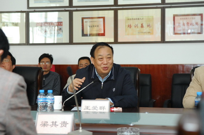 签字仪式上,副院长彭志宏同志致欢迎辞,王爱群院长对我院的发展史、目前学院的发展状况以及示范性建设等方面进行了详细的介绍。信阳职业技术学院院长梁其贵同志介绍了该院有关情况。随后,院长王爱群同志与信阳职业技术学院院长梁其贵同志在友好、热烈的氛围中签订了对口支援协议。