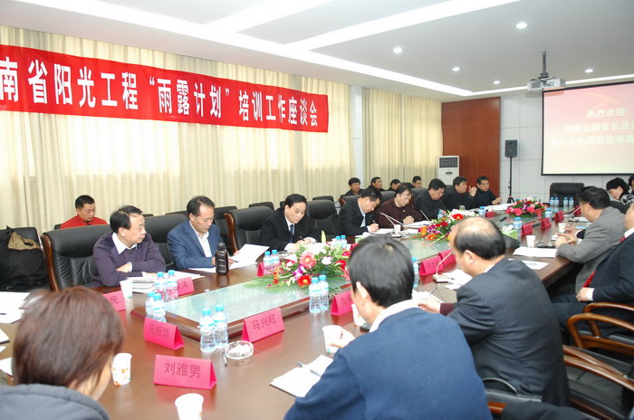 12月8日上午,河南省“阳光工程”、“雨露计划”培训工作座谈会在我院召开。会议由省政府副秘书长何平同志主持。河南职业技术学院、河南辅读职业技术学校等11个“阳光工程”、“雨露计划”培训学校负责人,省农业厅、省扶贫办负责人参加了座谈。副省长刘满仓出席座谈会并作了重要讲话。