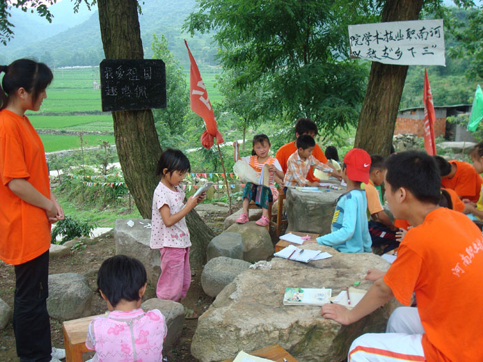 今年的暑期社会实践活动以“推进两大跨越,建设美好中原”为主题,结合专业特色,组成义务维修分队、群众家访分队和义务支教分队开展志愿服务活动。 活动期间,义务维修队员冒着酷暑先后走访农户百余家,免费为村民维修电风扇、影碟机、电视机、电话机、洗衣机等多种电器,深受村民好评。群众家访队员每天都在泥泞崎岖的山路上走访农家,与乡亲们一起劳作,闲话家常,详细了解当地的自然资源、风土人情,并给老乡们讲解一些简单实用的农业知识和技术。义务支教队员通过为留守儿童讲授书本知识、生活常识以及举办娱乐活动等形式,扩大了他们的视野,丰富了他们的知识。支教活动结束后,队员们为柳铺村小学捐赠了一些学习及体育用品。