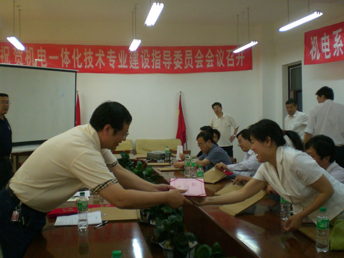 5月9日,我院召开机械电子工程系数控技术专业、机电一体化技术专业和电气自动化专业建设指导委员会会议。到会的专家有郑州日新精工有限公司郑兵总经理和王从钗高级工程师、郑州纺织机械有限公司设备处姚宝玉处长和文永强高级工程师、郑州煤炭机械有限公司李智明和李艳华高级工程师、郑州轻工业学院电气工程学院宋寅卯副院长和李银华教授,彭志宏副院长和教务处王卫平处长参加了会议。