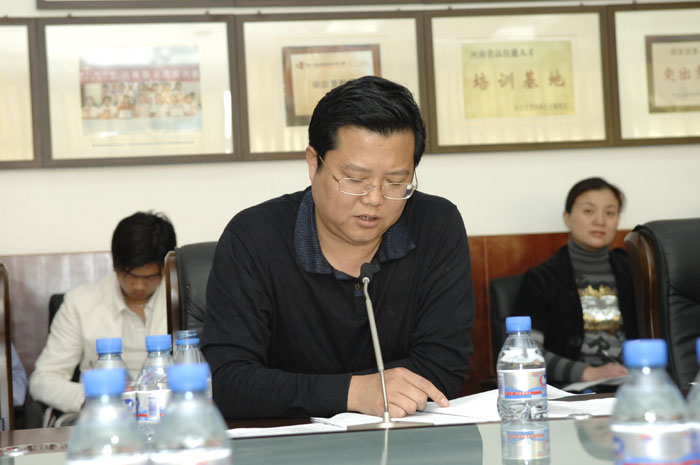 会议由院党委书记杨寿亭主持。副院长彭志宏、苏斌、工会主席郭自川和继续教育学院院长胡锡凤分别宣读了集团理事会第一次会议决议、省人力资源和社会保障厅关于同意成立河南省数控技术技工教育集团等9个省级技工教育集团的批复,以及集团理事长、副理事长、秘书长、理事单位名单和集团章程草案。大会表决通过集团理事长、副理事长、秘书长、理事单位和集团章程,并推举王爱群院长为集团理事长。王爱群院长随后就集团成立作了重要讲话。