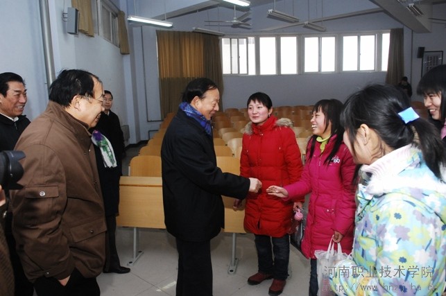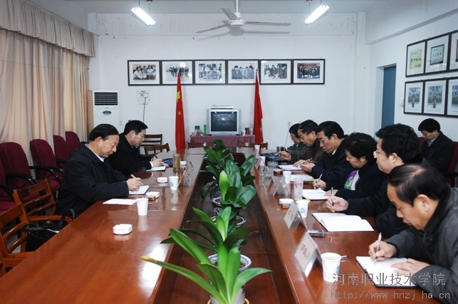 王院长在汇报中说,在厅党组的正确领导下,学院近年来发展很快,成绩突出,主要表现在:在校生规模超过了15000人;学生就业率达到了98.5%,再创新高;技能大赛屡获殊荣,最近在河南省大学生职业生涯规划大赛上取得了两个第一名的可喜成绩;已经建成了一个17万平方米建筑的初具规模的新校区;教学质量不断提高,创办省级示范高职我院名列总分第一;近年来总结凝练出了校园文化理念;学院领导班子勤政廉洁。关于明年的工作打算,王院长说,要把申办创建国家示范性高职作为中心任务来抓,要继续加快新校区建设,重点要抓三个提高,即提高教学质量、提高就业质量、提高教职工生活质量。王院长还就学院发展中存在的问题和困难向厅领导提出了希望和建议。