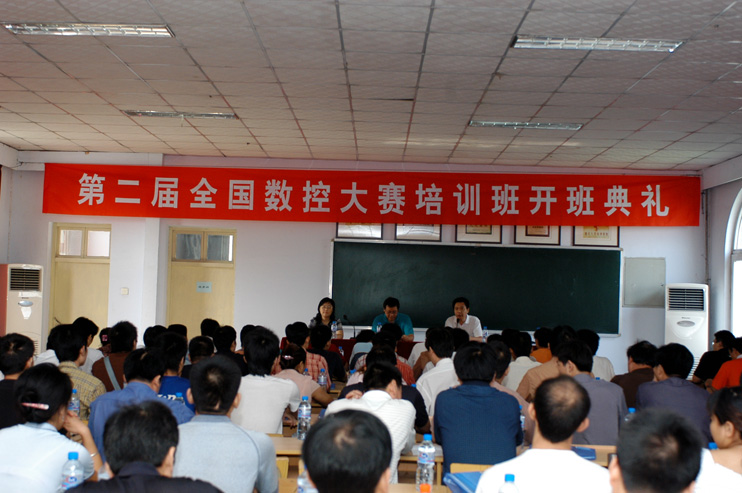 2006年7月24日上午,为期一周的第二届全国数控技能大赛河南赛区赛前培训班在我院正式开班,出席开班典礼的领导有,省劳动和社会保障厅技能开发处副处长朱飞、河南职业技术学院副院长彭志宏。此次培训班的授课教师主要有全国十大杰出工匠鲁宏勋、国家级裁判涂勇、CAXA高级技术人员以及河南职业技术学院第一届数控大赛指导教师苗志毅等。