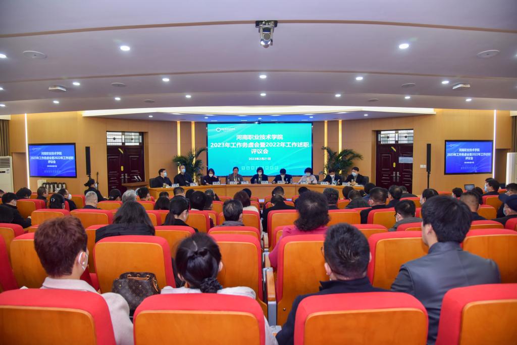 校长梅乐堂作了题为《谋篇布局理思路,勠力同心启新程,为实现学院高质量发展而奋斗》的工作报告,总结了学校在党建思政、人才培养、科技开发、招生就业、合作交流、疫情防控、教学环境、社会服务等方面的成绩,并指出了今年发展的总体思路:坚持以习近平新时代中国特色社会主义思想为指导,在省委教育工委、省教育厅领导下,全面贯彻党的教育方针,落实立德树人根本任务,以“双高建设”为重点,以职业本科为目标,围绕一条主线,紧扣一个根本,强化三个重点,深抓四项改革,做好五项工作。一是围绕深入贯彻落实党的二十大精神这条主线,坚定理想信念,把准思想政治“方向盘”;二是从深化思政铸魂、完善人文素养、提升素质教育方面出发,深抓立德树人“总任务”;三是做好“双高建设”“提质培优”和“职业本科”三项重点工作,打好学校提档升级的“主动仗”;四是高标准实施数字转型、高水平强化内部治理、高质量开展教育教学、高效能深化产教融合,驱动创新发展“强引擎”;五是做好师资建设、招生就业、环境优化、科研培训、安全防范五项工作,夯稳协同并进“压舱石”。他要求,全校上下要履职尽责,勇于担当,以更饱满的热情、更昂扬的斗志、更务实的作风,实现学校高质量、跨越式发展。