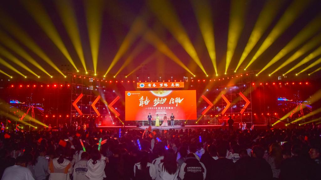 金秋时节,新程再启。9月26日晚,河南职院2023年迎新文艺晚会在学校田径场举行。校党委书记李桂贞及校领导班子成员、各单位相关负责人、新生辅导员及7400余名2023级新生一同观看了晚会。同时,晚会还同步进行现场直播,在线观看人数达3.1万人次。