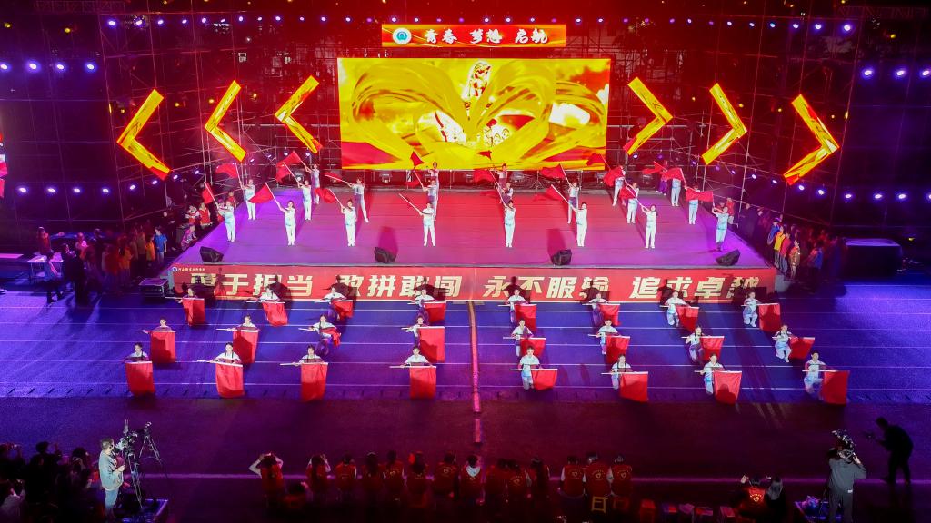 演出最后,校领导登台和全体演职人员一同挥舞国旗,齐声合唱《我们都是追梦人》。(供稿:度冉,审稿:房静)