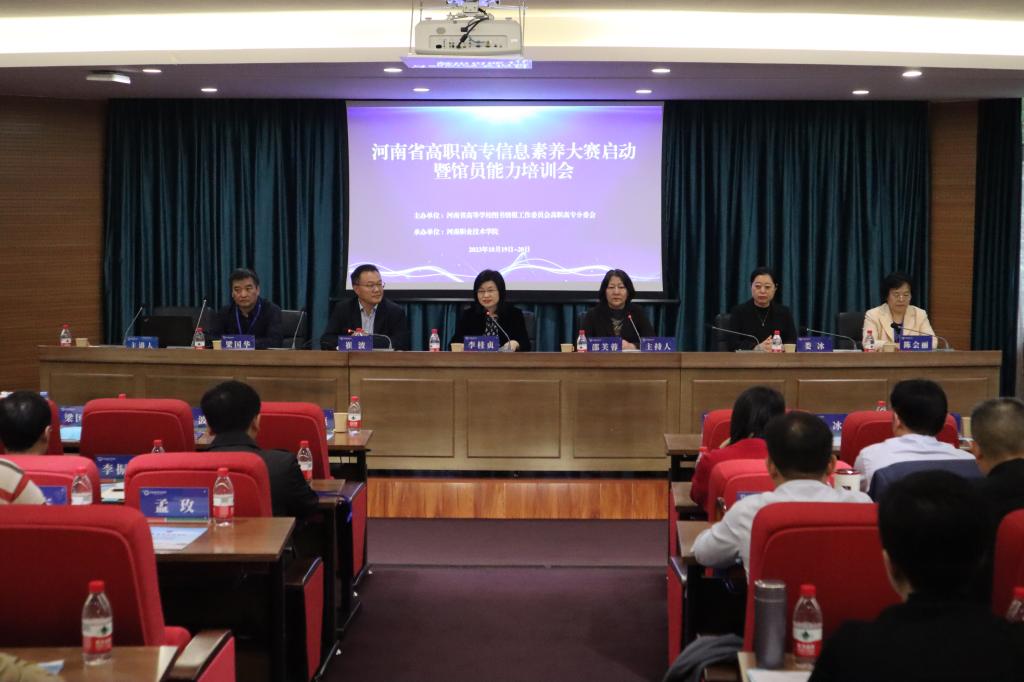 10月18日至20日,由河南省高等学校图书情报工作委员会高职高专分委会主办,河南职院承办的“2023年河南省高职高专信息素养大赛启动暨馆员能力培训会”在学校举行。校党委书记李桂贞,副校长邵芙蓉,河南省图书馆学会副理事长、河南省高校图工委副主任崔波等有关领导出席会议。全省49所高职高专院校的90余名图书馆工作人员参会,省内其他高校的220余名工作人员通过线上形式参会。会议由邵芙蓉主持。