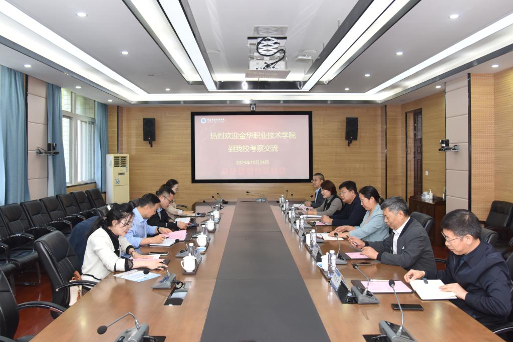 10月24日上午,金华职业技术学院校党委委员、副校长董晓晨一行4人来校考察交流。校党委副书记、纪委书记田华会见来访客人,人事处、后勤管理处、国有资产管理处、信息中心等部门负责人参加座谈会。