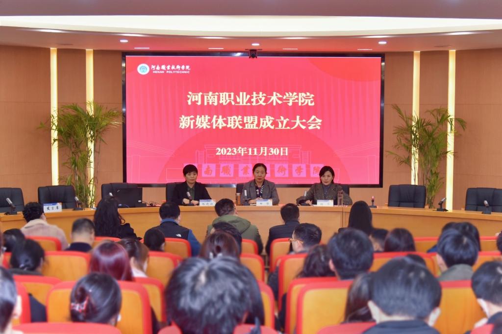 11月30日下午,河南职院新媒体联盟成立大会在行政楼239会议室举行。校党委副书记、纪委书记田华,河南教育新闻中心副主任杨晓谜出席会议。学校新媒体联盟成员单位相关负责人、指导老师和学生干部代表,以及各单位新闻宣传通讯员共160余人参会。校党委宣传部部长杨华主持大会。