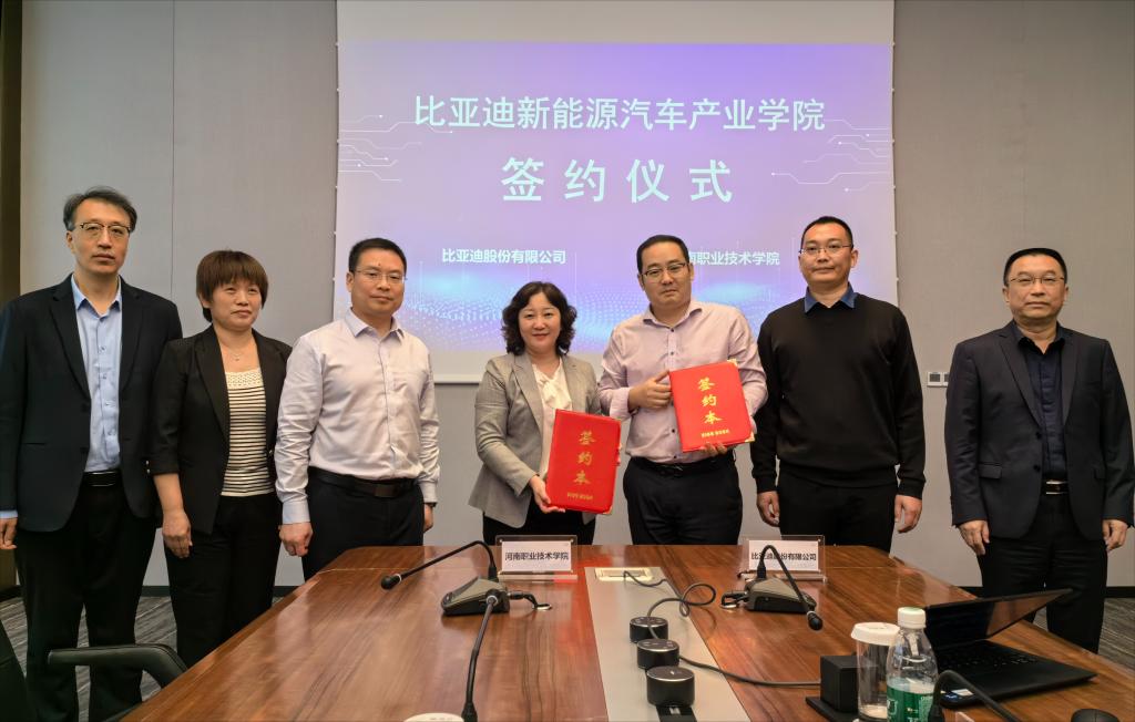 会上,夏新颜与刘俊鹏代表校企双方签署《比亚迪产业学院共建协议》。未来,校企双方将不断加强沟通协作,深化产教融合,创新人才培养路径,以产教融合助力校企高质量发展,助力学生高质量就业,为技能河南和地方经济发展培养更多高素质的技能人才。