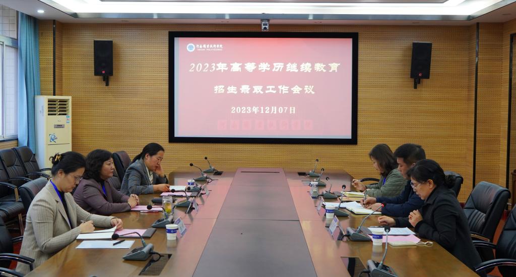 12月7日下午,河南职院2023年高等学历继续教育录取工作会议在行政楼317会议室召开。校长夏新颜,党委副书记、纪委书记田华出席会议。纪检监察室、继续教育与培训中心负责人及相关人员参加会议。
