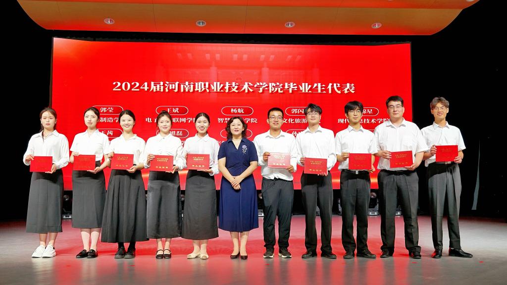 夏新颜作题为《与时代同行 书青春华章》毕业典礼致辞。她代表学校向圆满完成学业的7450名同学、向149名优秀毕业生、5名杰出毕业生表示祝贺,向辛勤培育同学们健康成长的老师们家长们表示最崇高敬意。她带领同学们一起回顾了在河职三年时光里的点点滴滴,并希望全体毕业生:一要坚定理想,做新时代的逐梦人。时刻将责任担当牢记于胸,自觉承担社会责任,勇做民族复兴的脊梁,用自己的“青春梦”托起“中国梦”,在“中国梦”中实现“个人梦”。二要砥砺奋斗,做新时代的实干家。在不懈奋斗中将学到的专业知识和技能带到工作中去、带到社会上去,用匠心铸就梦想,用技能点亮人生。三要勇于创新,做新时代的开拓者。争做开拓新领域、创造新业态、探索新模式、发展新质生产力的先锋,在创新创业的浪潮里奋力远航。四要闪亮生活,做新时代的追光者。要保持爱己、爱人、爱家庭、爱事业、爱生活的定力,在风雨中做个大人,在阳光下做个孩子,成就最好的自己。