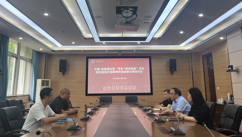 7月5日,学校召开中国-埃塞俄比亚“中文+职业技能”项目首批外派教师欢送会暨行前培训会。副校长鲁冬出席会议并讲话。国际合作交流处相关人员参加会议。