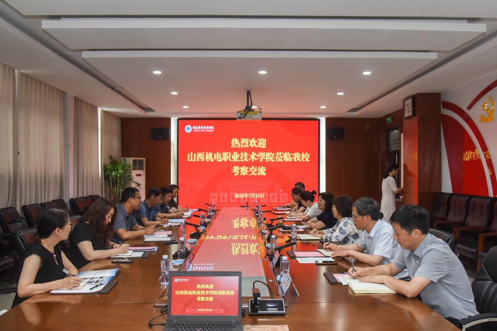 7月15日上午,山西机电职业技术学院校长宋志平一行6人来校考察交流,就校企合作、产教融合、科研服务等工作进行交流座谈。校长夏新颜、副校长肖珑出席座谈会。党政办公室、教务处、科技开发处和综合实训中心等相关部门负责同志参加座谈。