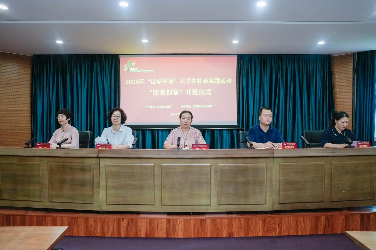 8月3日下午,河南省第八届普通高等学校“出彩中原”大学生主题社会实践活动之2024年“四有创客”创新创业实践活动在河南职院开班。校党委副书记、工会主席田华出席仪式并致辞。党委学生工作部、创新创业中心相关负责同志及来自全省18所高校的100名学生参加此次活动。