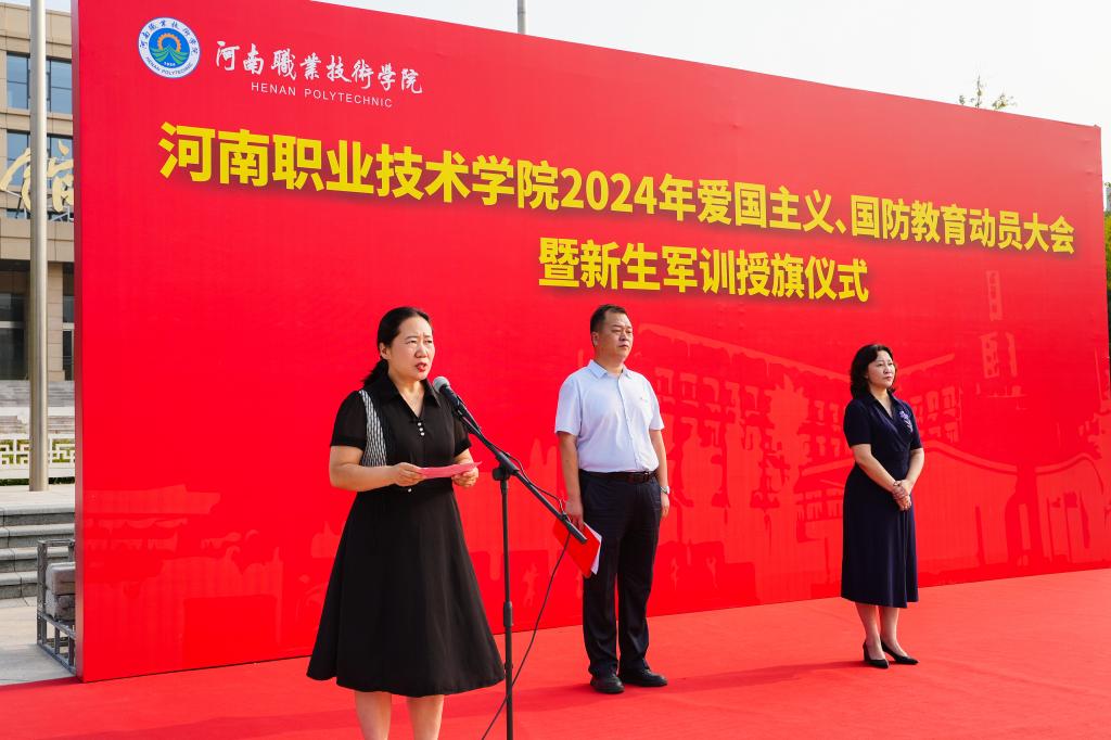 活动现场,夏新颜为军训总教官授校旗。田华作动员讲话,指出学生军事训练,是实现立德树人根本任务、培养高素质后备兵员和提高教育质量的重要方式,是增强爱国主义、集体主义和国防意识的绝好途径。她希望同学们通过为期14天的军训,能够增强纪律观念,磨练坚强意志,练就实干本领,增长服务才干,培养艰苦奋斗作风,为努力成为“政治素质高、学习成绩优、作风纪律严、理想抱负远”的新时代合格大学生打下坚实基础。