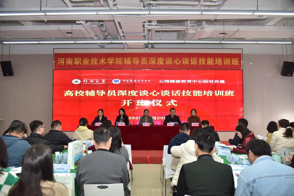 3月29日至30日,学校在河职创新港举办了“高校辅导员深度谈心谈话技能”专题培训班。校党委副书记、工会主席田华出席开班仪式。郑州大学心理健康教育中心主任刘慧瀛教授应邀进行现场教学。学校各二级学院的专兼职辅导员及心理健康中心专职教师共 156 人参加了培训。