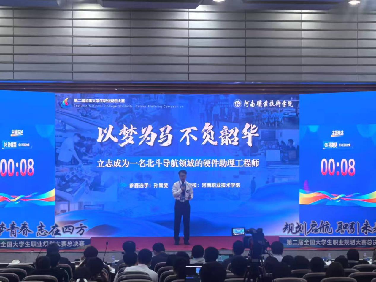 4月16日至19日,第二届全国大学生职业规划大赛全国总决赛在湖南长沙举行。河南职院两名学生参赛,斩获一金一铜,刷新了学校在此项赛事中的历史最好成绩。