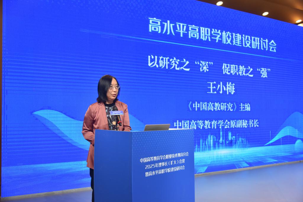葛道凯作了题为《关于教育强国建设中高等职业教育高质量发展的几点思考》的主旨报告。他围绕习近平总书记关于建设教育强国的讲话精神、党的二十届三中全会关于教育工作的重要部署、落实全国教育大会精神和《教育强国建设规划纲要(2024—2035 年)》要求,用详实的数据和生动的案例,分析了教育强国建设中高等职业教育高质量发展的思路。他表示,面对新时代教育发展的新趋势,职业教育必须变革,要推动职业教育系统发展、统筹发展、融合发展,核心是处理好理论和实践的关系、教学与科研的关系、投入和产出的关系、知识和精神的关系。