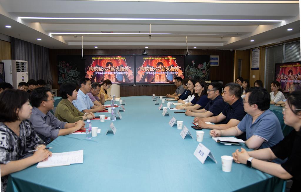 河南省陶瓷玻璃行业管理协会会长杨德林、副会长暴风云,河南省工艺美术大师刘瑞海,禹州非遗钧瓷烧制技艺传承人李尚,分别围绕陶瓷艺术行业人才需求特点、产品艺术设计赛项竞赛模式及评分要点、非遗技艺传承中的工匠精神培育、本科层次校企协同育人模式等方面展开论述。师生们与专家进行了深度交流研讨。