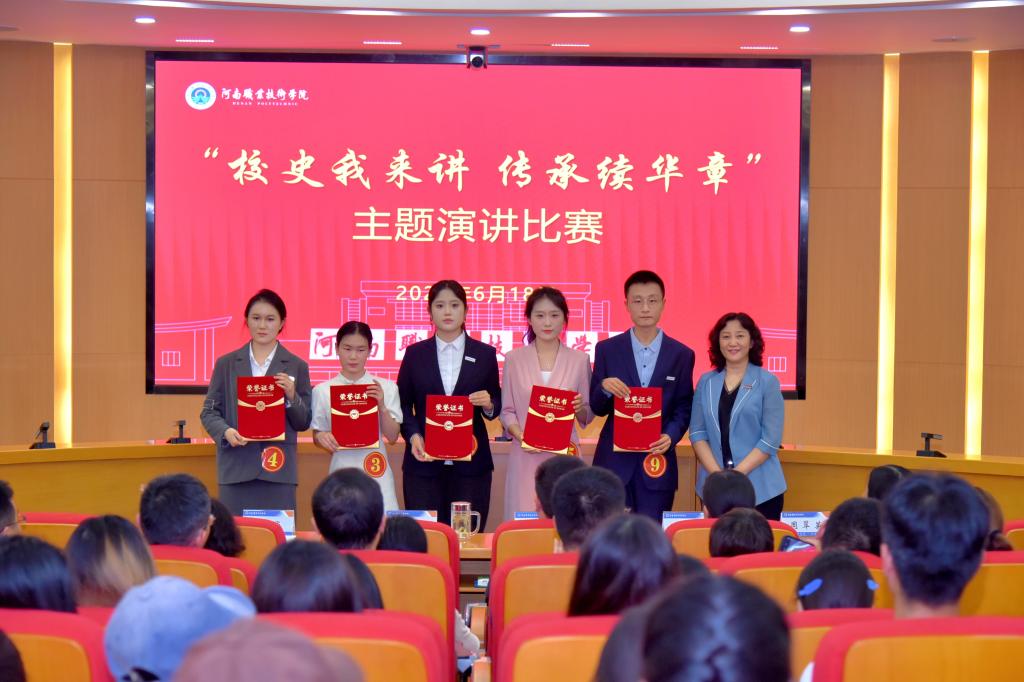 6月18日下午,学校举办“校史我来讲 传承续华章”演讲比赛。校党委书记厉励,校党委副书记、校长夏新颜,校党委副书记、工会主席田华担任评委并为获奖学生颁奖。校党委委员、组织部部长杨华,党委宣传部、校团委和基础教学部负责同志,各二级学院党总支书记、副书记、团总支书记和学生代表近140人参加活动。