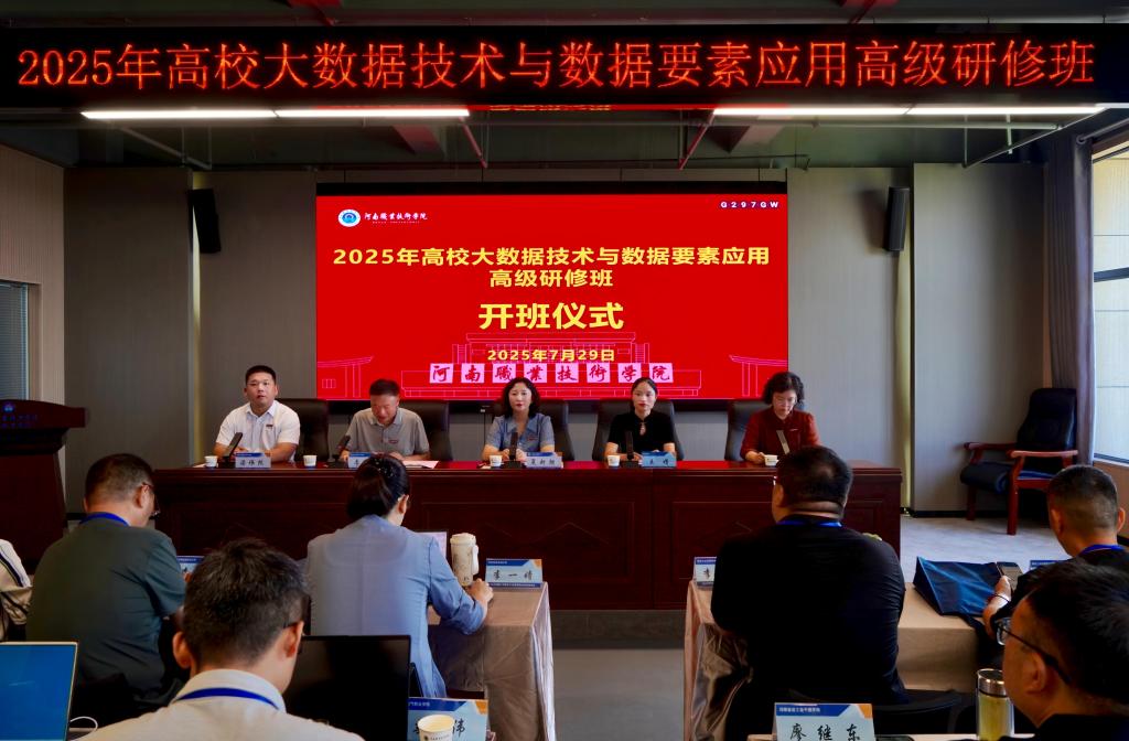 7月29日上午,由河南省人力资源和社会保障厅主办、河南职业技术学院承办的2025年高校大数据技术与数据要素应用高级研修班开班仪式在合鼎楼719继续教育培训中心举行。校党委副书记、校长夏新颜出席开班仪式并讲话。北京大学大数据分析与应用技术国家实验室特聘副研究员王娟,继续教育学院相关负责人,以及来自省内高校和企业50余名从事大数据技术相关工作的专业技术人员参加了开班仪式。仪式由校党委委员、副校长李玉峰主持。