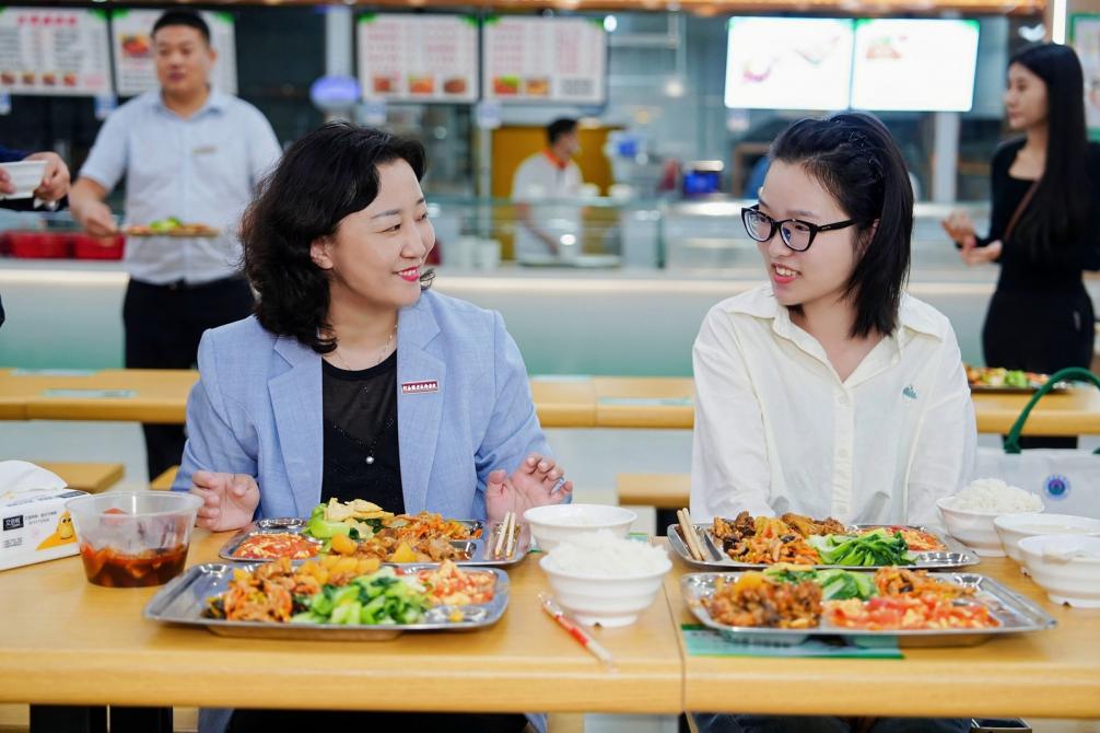 在学生餐厅,夏新颜实地查看就餐服务情况,详细了解假期菜品供应种类、食材采购渠道及卫生保障措施。在与学生共进午餐时,主动询问学生满意度,耐心倾听大家分享假期学习进展与生活趣事,认真记录学生对学校教学管理、后勤服务等方面提出的意见建议。对于学生困惑,她逐一耐心解答、疏导情绪,就餐氛围轻松融洽。餐后,夏新颜为每位学生送上月饼,她叮嘱同学们“假期既要专注学业提升,也要照顾好日常生活,遇到任何困难随时向学校反馈,学校永远是大家的坚强后盾”。在欢庆国庆华诞、共庆中秋佳节、共叙家国情怀中,学生纷纷表示,“双节”期间虽未能与家人团聚,但却感受到了来自学校的关心、关怀、关爱,感受到了如家般的温暖,定将怀揣感恩之心,做怀抱梦想又脚踏实地,敢想敢为又善作善成,有理想、敢担当、能吃苦、肯奋斗的新时代好青年,以满腔热情续写河职精彩华章。