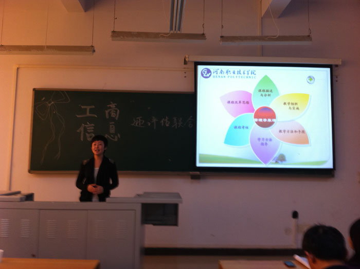 10月13日下午,为迎接省教育厅专家组对我院进行的人才培养水平工作评估,工商系、信息系组织100余名专业教师在3212教室联合举行了说课观摩活动。工商管理系万久玲主任、刘冰涛副主任,信息工程系副主任孙杰、张滨燕和示范办任枫轩老师应邀参加了本次活动。