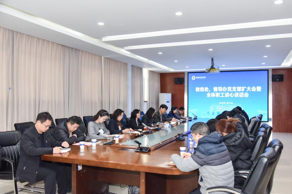 1月27日,校党委副书记、校长夏新颜以普通党员身份参加所在的教务处、督导办公室党支部扩大会议暨全体职工谈心谈话会。两个单位在郑全体工作人员参加会议。