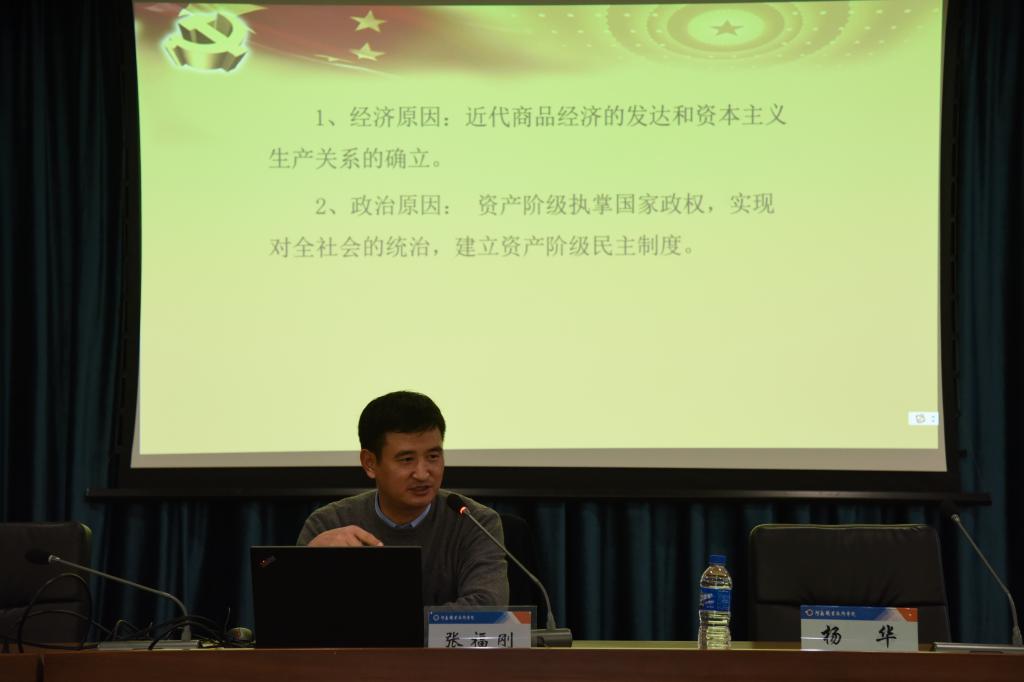 张福刚以理实结合、深入浅出的方式,从宪法的由来、中国百年宪治简述、宪法离我们有多远、公立高校治理中的宪法问题等四个方面为现场师生进行了详细解读,分析了宪法的发展、宪法的实施现状、习近平法治思想、高校治理法律风险控制等情况,并结合高校教育教学、师生管理等方面存在的风险问题,对依法治教、依法治校和依法办学提出了建设性的意见。既有理论的依据,又有典型案例的剖析。张教授的讲授让现场师生觉得很实用,也很受启发,进一步加深了他们对依法治教、依法治校和依法办学实践运用的深刻认识。互动环节中,张教授详细解答了师生们提出的一些具体法律问题,同时,双方还就高校管理中的一些问题进行了交流探讨。