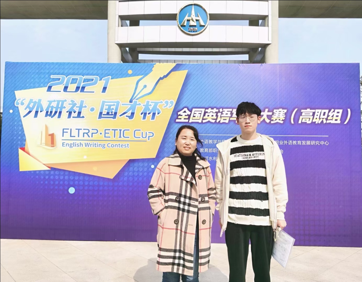 10月23日,由教育部职业院校外语类专业教学指导委员会和外研社联合主办的2020“外研社·国才杯”全国英语写作大赛(高职组)”河南赛区复赛在黄河水利职业技术学院举行。我校2名参赛学生均获佳绩,其中张旭同学荣获公共英语组特等奖并进入全国总决赛,吴雨欣同学荣获三等奖。