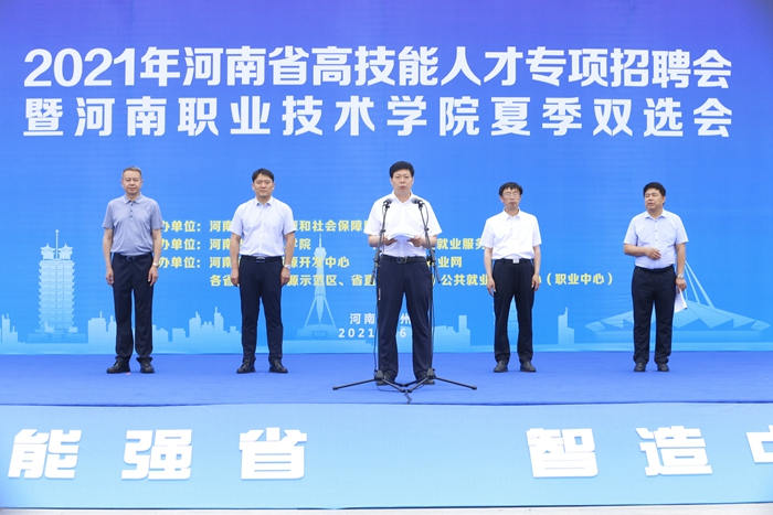 6月16日,由河南省人力资源和社会保障厅主办,我校与河南省公共就业服务中心共同承办的2021年河南省高技能人才专项招聘会暨河南职业技术学院夏季双选会在我校成功举办。河南省人力资源和社会保障厅党组成员、副厅长杨昆锋出席开幕式并讲话,学校院长梅乐堂致辞,河南省公共就业服务中心主任蔡树峰主持开幕式。我省18个地市公共就业服务负责人、学校师生代表和用人企业代表参加了活动。