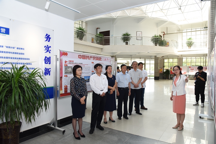 为充分发挥领导干部作为“关键少数”在党史学习教育中的示范引领作用,推动党史学习教育进一步入脑入心、走深走实,5月28日上午,学校领导班子成员、党史学习教育领导小组办公室成员和机关党总支部委员,在行政楼一楼大厅集体参观学习了中国共产党简史主题展览。