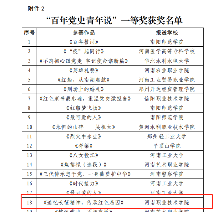 此次活动由中共河南省委高校工作委员会、河南省教育厅、共青团河南省委、河南广播电视台联合开展,作品内容涵盖党的革命史、发展史以及新时代党员的先进事迹等内容。我校《追忆长征精神,传承红色基因》以音诗画的形式呈现,讲述了老一辈革命家波澜壮阔、血火硝烟的艰苦征程,深情追忆缅怀红军先烈的卓越功绩,激发广大党员的爱国热情与无私奉献精神,引导广大团员青年坚定走好新时代长征路的理想信念。