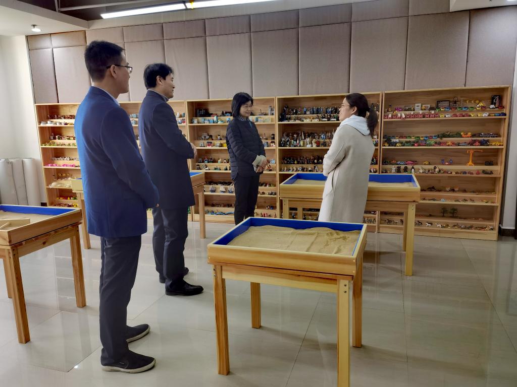 李桂贞一行先后参观了已建成的沙盘游戏室、身心放松室和个体咨询室等功能室,详细了解了心理沙盘等设备的功能和使用情况,重点对拟扩建服务场地、功能室的设置、内外环境美化、心理咨询与辅导等提出具体的指导意见。