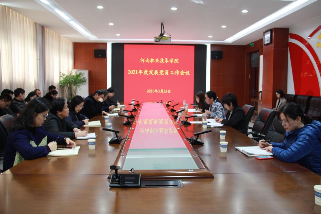 3月23日下午,学校2021年度发展党员工作会议在行政楼332会议室顺利召开。学校副院长田华,各二级学院党总支书记、学生支部书记、组织员及组织部相关人员共24名同志参会。会议由组织部部长霍本瑶主持。