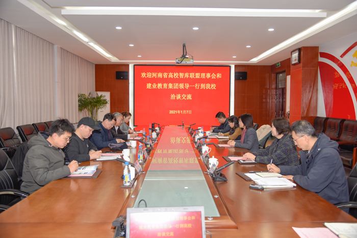 1月7日下午,河南省高校智库联盟理事会和建业教育集团领导等一行5人来我校洽谈校企合作事宜。校党委书记李桂贞主持交流会并就学校有关情况进行了介绍。党政办、合作交流处、创业学院和继续教育学院相关负责人参加交流会。