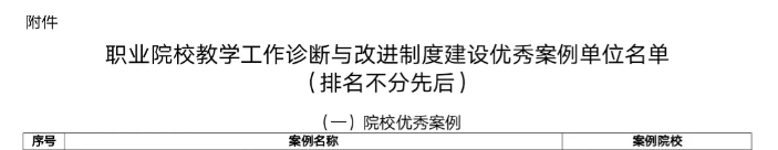 近日,全国职业院校教学工作诊断与改进专家委员会下发《关于公布职业院校教学工作诊断与改进制度建设优秀案例的通知》(职教诊改〔2020〕11号),我校诊改案例“内外兼修、数据护航,不断提升专业课程诊改实效”成功入选全国职业院校教学工作诊断与改进制度建设优秀案例。