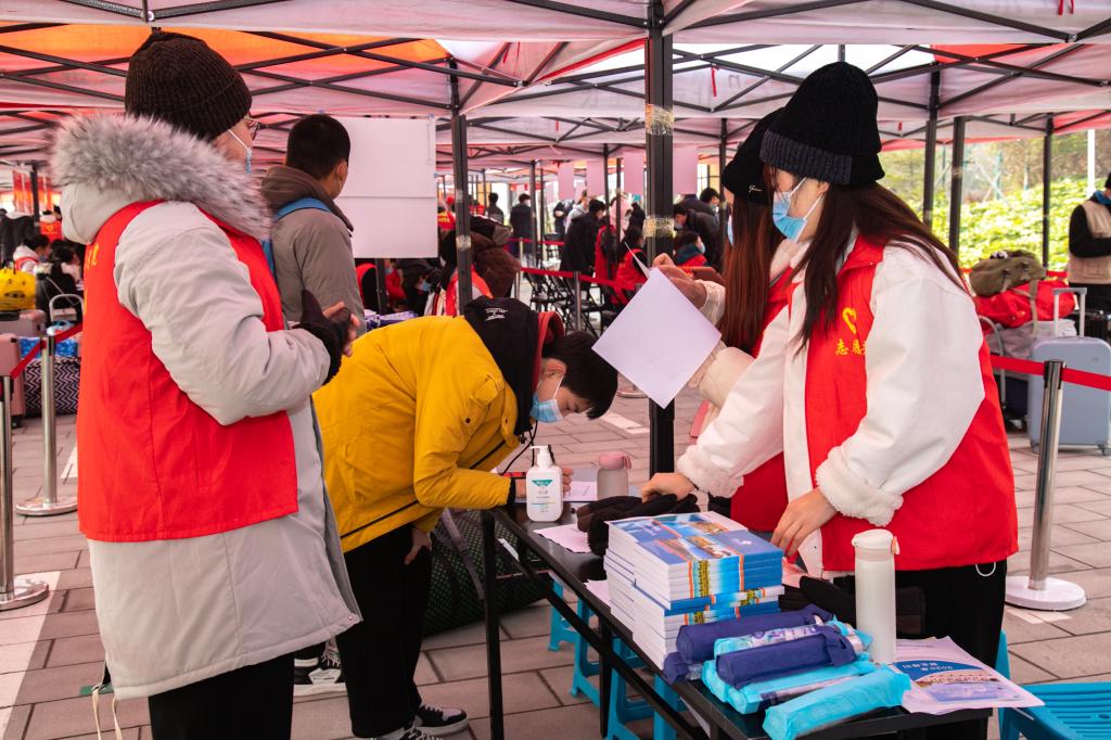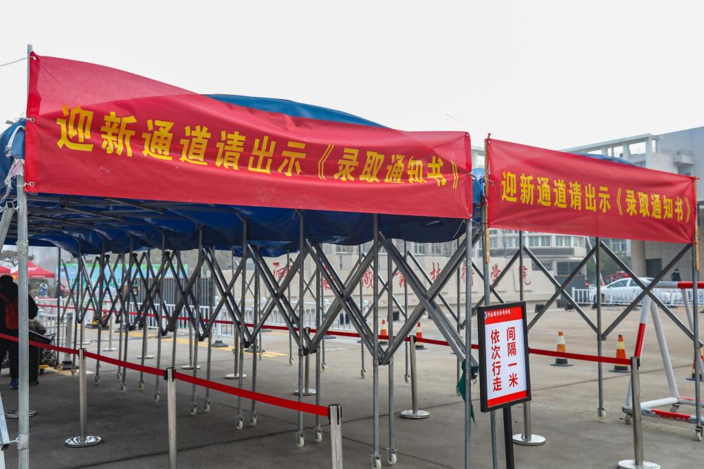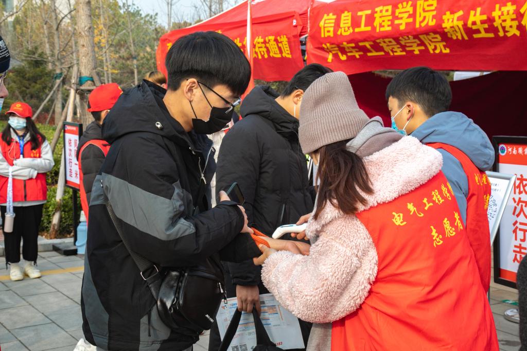 校领导一行实地查看了新生行李消杀、身份核验、测温、扫描健康码、身份确认、进入校园等报到环节,与报到新生进行了亲切交流,向迎新工作人员详细了解了学生报到基本情况,感谢大家在寒冷的天气为确保新生顺利报到而付出的辛勤努力,并叮嘱他们一定要持续做好个人防护,注意自身健康和安全。迎新现场在老师和志愿者的组织引导下,程序规范、秩序井然。
