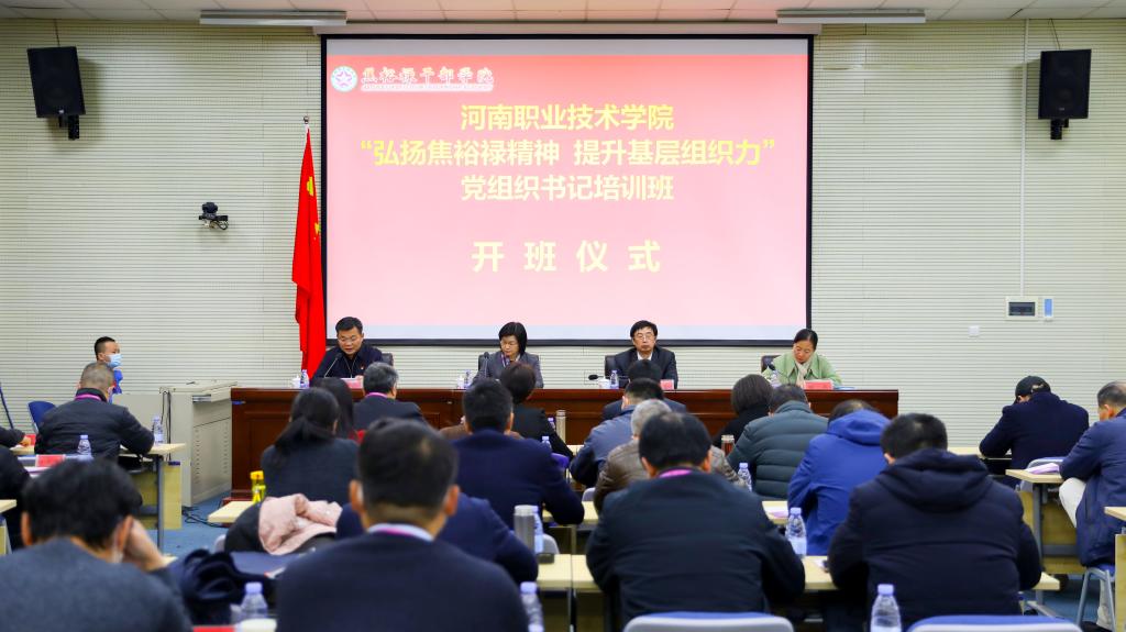 开班仪式上,焦裕禄干部学院党委副书记、常务副院长席建设同志代表焦裕禄干部学院致欢迎辞;我校党委书记李桂贞同志以《找准定位守正创新为学院双高建设和提质培优行动计划提供坚强组织保障》为题作了动员讲话,对学校基层党组织建设和党组织书记能力提升提出了明确要求;院长梅乐堂同志为本期培训班授旗。开班仪式由副院长田华同志主持。