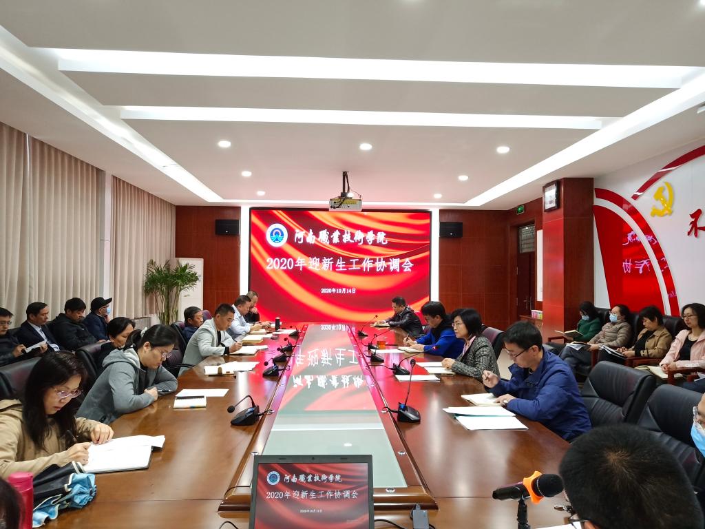10月14日上午,我校在行政楼332召开2020年迎新生工作协调会。院长李桂贞、工会主席夏喜利出席会议,相关职能部门负责人及各二级学院相关负责同志参加会议。