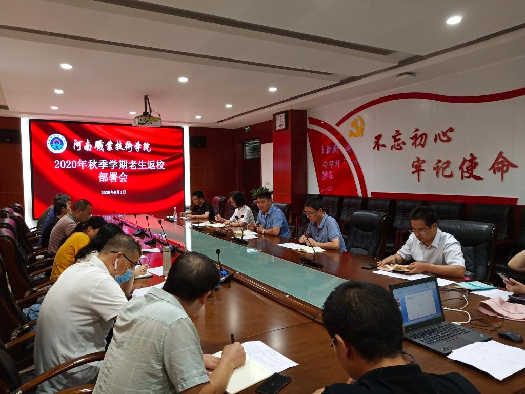 会上,学工部绍了2020年秋季学期老生返校的工作安排和要求,对二级学院返校位置、返校流程、返校注意事项和返校后要求等四个方面详细进行了工作部署,说明了在返校前、返校中以及返校后的疫情防控安全注意事项,着重审查中高风险地区学生、特殊返校学生和暂缓返校学生的入校手续的办理以及注意事项;防控办对防控新要求、新政策、后勤物资准备情况进行了解读;保卫处对于学生返校的安保做了详实说明和部署。各职能部门和二级学院对学校2020年秋季学期老生返校、管理、服务等具体工作进行了深入的讨论和研判。